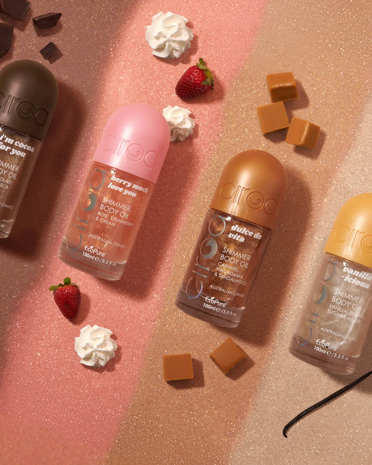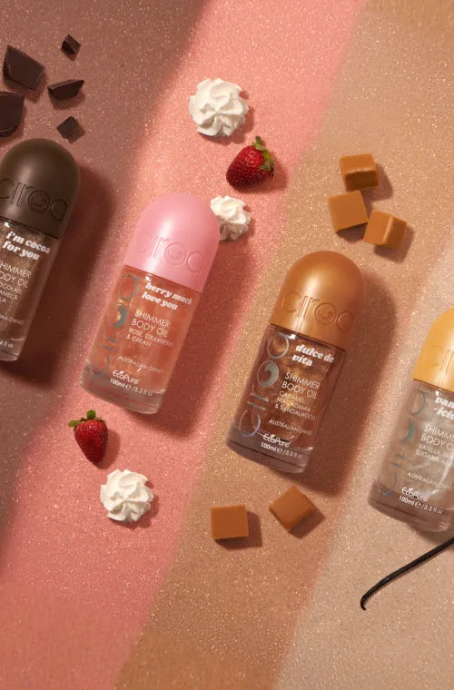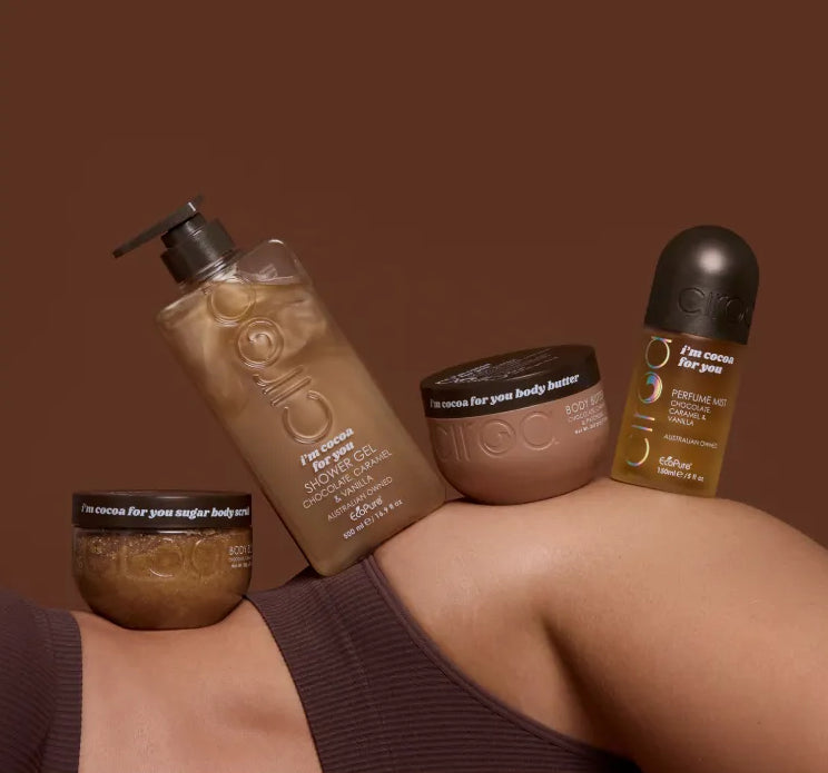 A decadent blend of rich chocolate fudge, golden caramel drizzle, and soft vanilla that feels warm, cosy, and irresistibly comforting. Available in a Shower Gel, Body Scrub, Body Butter, & Perfume Body Care Mist and Shimmer Body Oil.