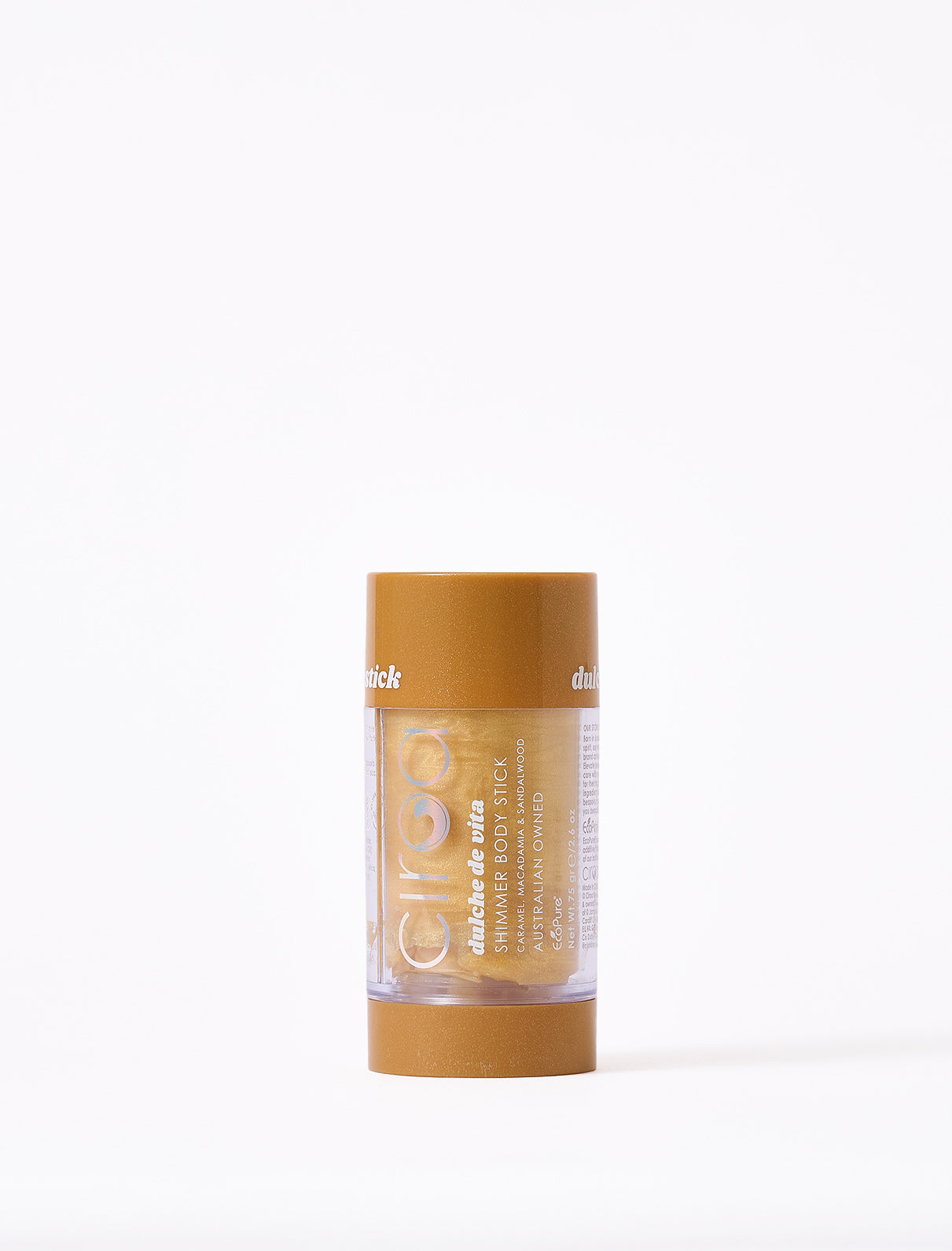 Glow on the go with our Dulce De Vita Shimmer Stick. This creamy and blendable formula glides effortlessly over the skin to deliver an instant luminous sheen with the scent of caramel, toasted macadamia and soft sandalwood. It melts in for a silky, radiant finish. Perfect for collarbones, shoulders, or anywhere you want to shine.