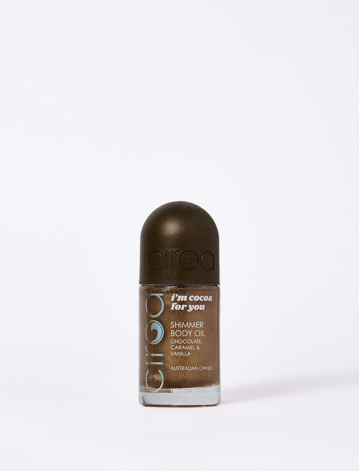 Drench your skin in glow with the I’m Cocoa For You Shimmer Body Oil. Lightweight and nourishing, it hydrates skin while leaving a radiant sheen and wraps you in the irresistible scent of chocolate, caramel and vanilla.